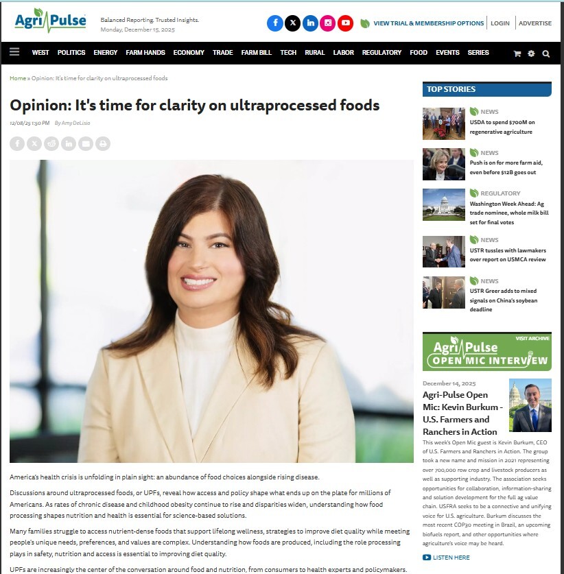 In my recently published opinion piece in AgriPulse, I explain why clarity on ultra-processed foods is urgently needed. The dairy community has an opportunity to lead by showing how responsibly produced dairy foods support balanced eating patterns
